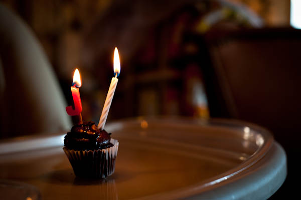 Since we are using everything in our pantry, baking a cake was out of the question (we have about 2 tables spoons of sugar left right now and using packets of Splenda would take forever), so it was mini-cupcakes from a local bakery (Babycakes, if you're curious).